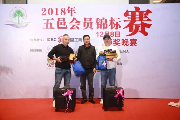 颁奖晚宴设于球会会所餐厅,共颁发十三个赛事奖项及年度蒲葵之星优秀会员奖项。此外还现场抽取了幸运名次奖,并穿插多轮幸运抽奖,奖品礼品丰富!在此特别鸣谢中国工商银行江门分行、江门市合礼汽车销售服务有限公司等多家单位对本次赛事的慷慨赞助!