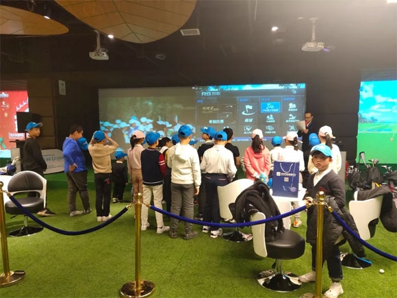 由教练代表和学员代表进行发言,讲述赛事的规则和注意事项,随后对学员们进行了分组,在如歌模拟器上体验一场PGA青少年联赛热身赛。