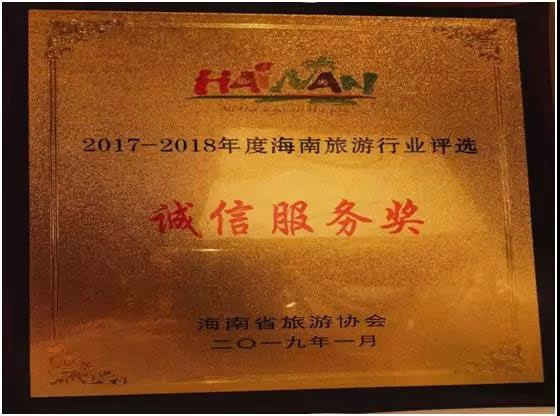 海南神州高尔夫球会荣获2017-2018年度诚信服务奖