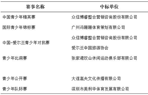 中国青少年精英赛等赛事承办运营商中标的公示