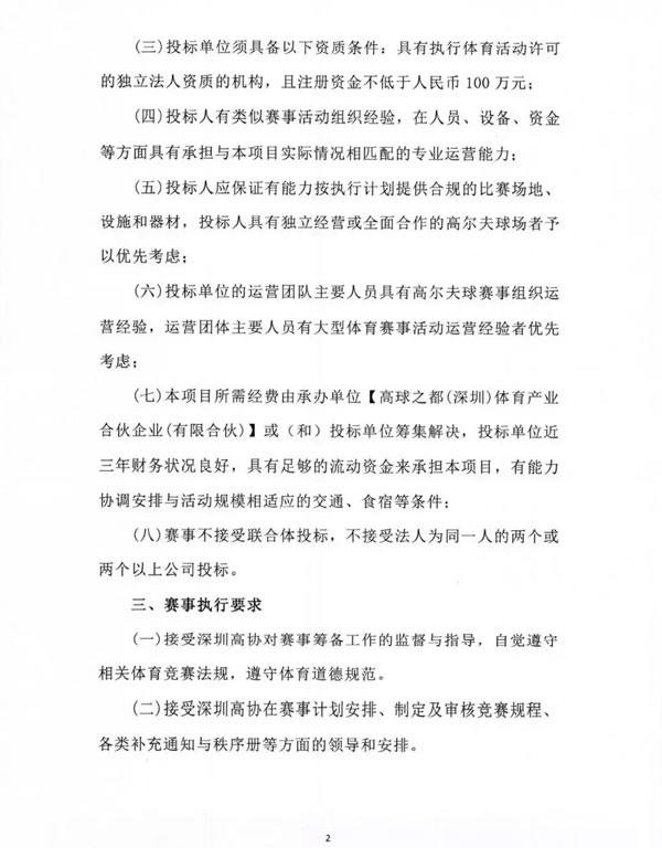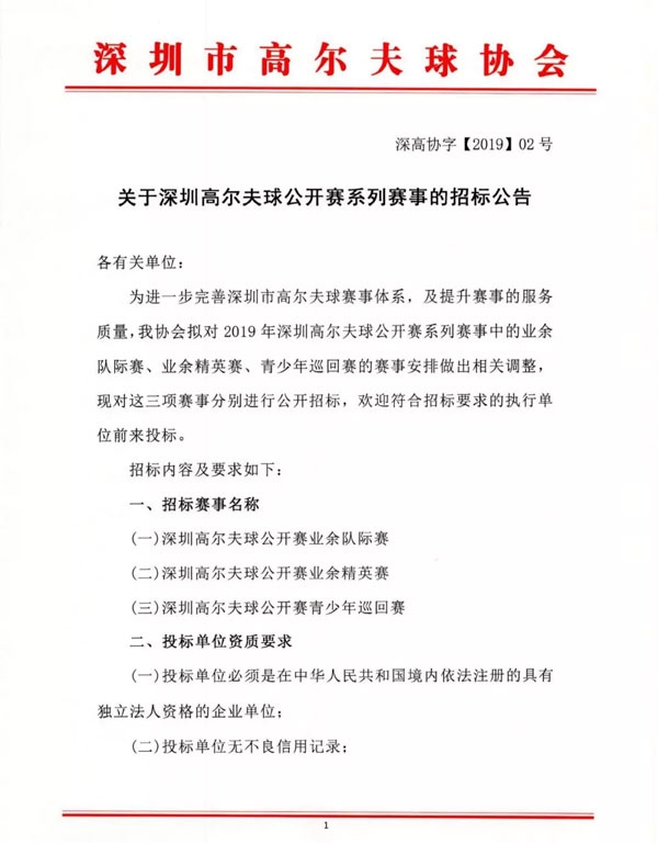 关于深圳高尔夫球公开赛系列赛事的招标公告