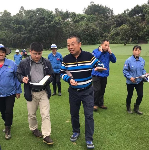 上周,长江高尔夫球会总经理傅勇捷先生,副总经理梁栋先生、草坪部经理王科先生以及草坪部的员工们对球会B场草坪进行严格的工作检查。