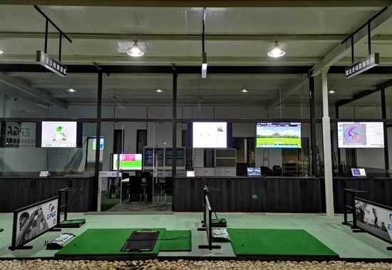 球场得知精准高尔夫检测训练中心是国内首家利用世界顶尖的高尔夫检测设备进行教学的专业教学机构,划出了一个90㎡包含四个打位的专属区域。