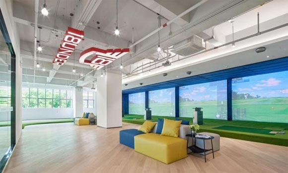 18UNDER室内高尔夫工作室位于深圳福田保税区,周边学校、住宅区、办工区林立环绕,离学院位于市福田市中心的室外训练场地只有10分钟车程。占地面积1000㎡的球馆分别由高清技术指导区、模拟器练习区、果岭区、体能区、休闲区、更衣室、存包室及一个豪华包间组成,室内共装有6台如歌模拟器。简约而颜色明快的设计,沙发、原木地板、大窗户,时尚摩登的装修风格,环境舒适。不管是大人还是小朋友,职场白领还是家庭主妇,这里都是下班、放学和完成日常工作后的休闲放松好去处。
