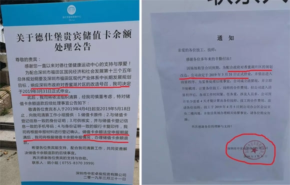 深圳德仕堡健康运动中心正式发布《停业公告》