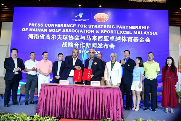 发布会上,海南省高尔夫球协会秘书长莫壮飞与马来西亚卓越体育基金会CEO西瓦共同签署两地高尔夫组织机构战略合作意向书并宣布,双方将共同为两地高尔夫事业产业的发展而付出努力。
