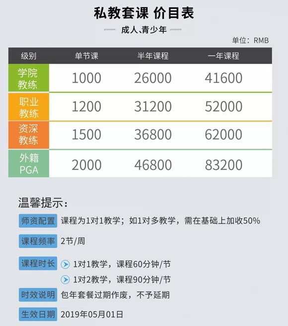 为庆祝KTTC同泰壹号高尔夫训练基地挂牌成立,同泰壹联合KTTC推出特别优惠,让成人和青少年能以更低的价格够享受到中国职业教练和美国PGA教练的专业指导。