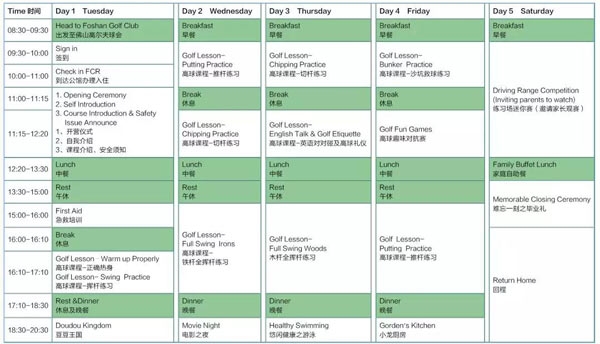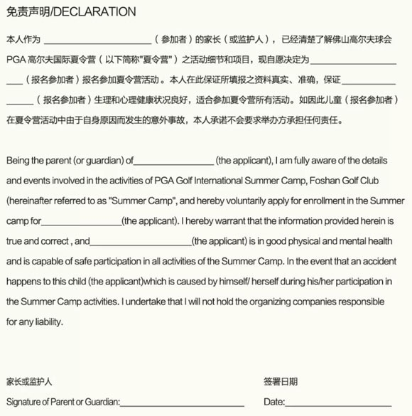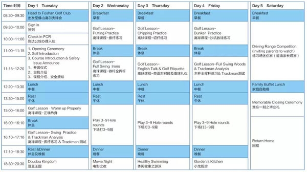 * 每期PGA高球夏令营至少6人以上方可开营,限18人参加。