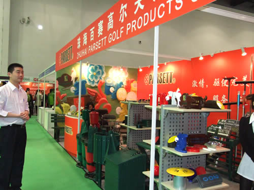 在大品牌和洋品牌占主导地位的高博会上,一家本土企业,引起了我们的注意, 不仅是因为它富有民族气息展位布置, 更因其展示的产品,多是在建材市场才能看到,在展会上还真少见。一问,果然,都是高尔夫球场维护用的一些不起眼却必不可少的东西,比如,专门放沙子的箱子,还有洗球机等等。同那些卖体型巨大的球场设备的供应商比起来,百赛的产品属于利润薄,竞争激烈。不过,中国人都能卖扣子卖成世界第一,说不准百赛也能走的很远,起码,通过展会,我们大家都知道珠海有这家公司,祝百赛走好!