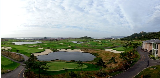 山东威海石岛高尔夫球场(山东威海石岛旅游休闲度假村)位于石岛管理区朝阳山南麓,依山傍海阿里郎球道在山丘、陡坡间起伏不定。