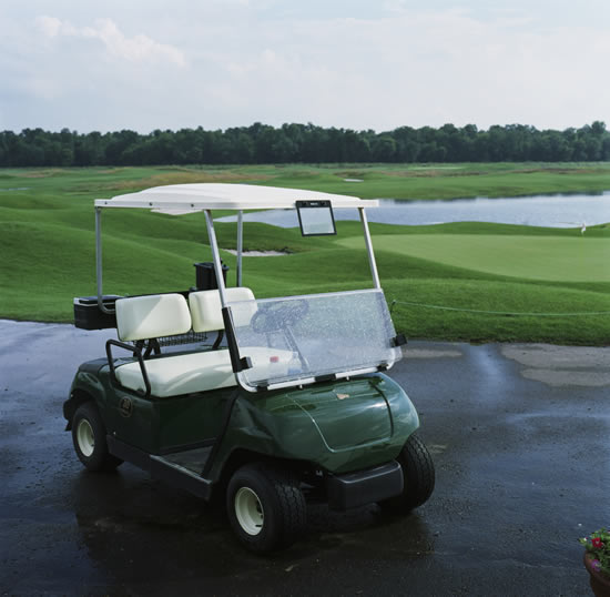 韩国济州高尔夫球车杂谈 :韩国大多数的高尔夫球场都是一名球童服务一组四人,乐天也如此,很历害,不仅流程上井井有条,技术和服务质量也决不打折扣。打球期间,还有“无人驾驶”的球车。球车道有磁轨,高尔夫球车车可以人工或遥控驾驶,球车遥控由球童用遥控器控制。一组在第五洞,其它球手在果岭推杆,站在高架上拍摄球场时,拍到了球车“自己”开向下一个洞区等待人的,深感韩国球场在科技应用方面的用心投入。另一方面,这种遥控球车在球场中的运用,也很节省资源,在国内我们一组四人下场,需要两台高尔夫球车,四确良个球童,而在济州的大多数球场,基本上都是一台球车。