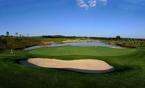 第11洞是个两边有水的5杆洞,第一打水障碍在右边,第二打水在左边,一左一右平衡前进,打什么球路都很舒服,但也都要小心。第12洞是全场36洞唯一的一个双果岭,虽然这个四杆洞不长,黑Tee也不过376码,但旗杆插在左边果岭还是右边果岭,攻果岭的一杆效果完全不同。水系从左边一直跟随到果岭,如果在左边果岭,挑战正面水障碍无法回避。