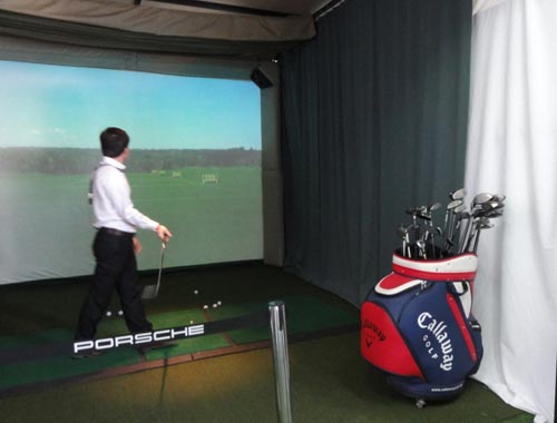 保时捷纪念活动现场设立了高尔夫模拟区,提供卡拉威试打球杆供车主们进行有奖挥杆活动,使用高科技模拟仪器测算挥杆距离,达到或超过一定距离的车主们还可以获得由卡拉威提供的赠品。由于该试打区域模拟真实的自然环境,为整场试打活动增色不少,车主们也积极参与。现场所有的试打球杆都由卡拉威公司免费提供的,也为车主们提供一个近距离接触卡拉威2011年新品球杆的机会。而在高尔夫展示区域,卡拉威高尔夫公司展示了今年的新款Legacy 系列,尊贵高雅的设计,卓越不凡的表现都让消费者们大饱眼福。