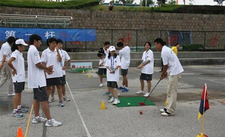 阳光体育校园高尔夫 青岛挥出精彩第一杆