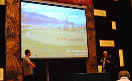 随后美国草坪总监协会前主席、美国Grigg Brothers公司首席顾问Bruce Williams针对GRIGG BROTHERS叶面肥产品Proven Foliar和如何优化果岭做了详尽的演讲。