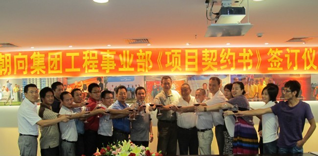 2011年7月,朝向集团工程事业部在集团22楼会议室举行了隆重的《项目契约书》签订仪式。此次《项目契约书》的签订,作为工程事业部绩效改革的重大成果,标志着工程事业部的绩效改革将正式落地,进入试运行阶段。