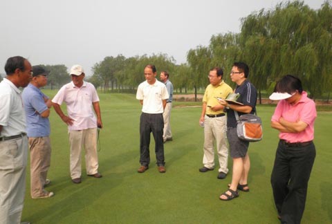 2011年8月11日至2011年8月12日,在赵美琦教授和特邀专家孙学智、王建团、蓝云翠、王学清等人的指导和大力支持下, 朝向管理集团草坪服务与研究中心对天津十几家高尔夫球场草坪夏季病虫害发生情况进行调查访问,并在赵教授的指导下为其中部分球场做草坪病害诊断。与此同时,草坪中心以电话访问的形式对我国其他数十个高尔夫球场进行夏季病虫害调查,了解并总结研究了我国高尔夫球场特别是北方球场草坪病虫害发生情况。