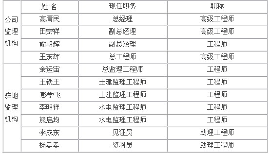 监理组织机构人员如下: