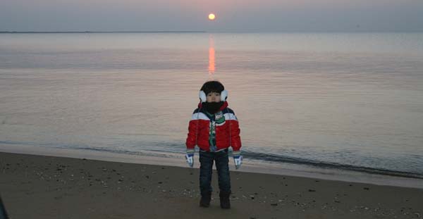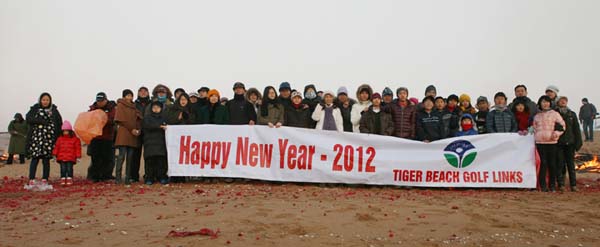 2012年1月3日四岁的韩国小朋友昌赫永远忘不了这个早晨,这是他人生第一次参加观日出活动,清晨5点半就被爸爸从梦乡叫醒,穿戴整齐来到海阳旭宝的海滩上。元旦观日出韩国的传统节日,每年元旦早晨,不管天气有多恶劣,人们都会早早起床,跑到可以最先看到日出的地方,对着新年初升的太阳,许下美好心愿,新的希望。 海阳旭宝是典型的苏格兰LINKS球场,除了苍茫的球场原始景观,南边还有长达2.2公里的金沙滩,其沙质细致干净,晴朗的早晨,太阳会从东边的海天一线蹦出来,非常壮观,在山东的韩国的球友们觉得这边很适合做观日出的场地,每年都会聚集过来,参加元旦晚会和第二天一早的活动,这也就逐渐演变成海阳旭宝的年度盛会。