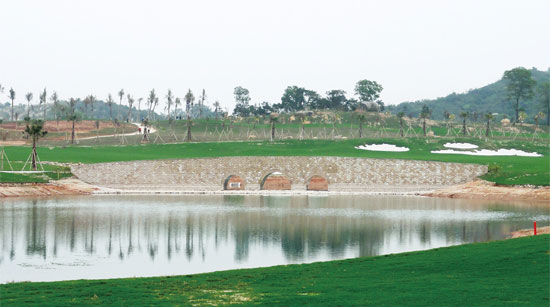 谁也不会想到,聚豪高尔夫球会的改造居然是因为边上的铁岗水库。铁岗水库是深圳地区的第一大水库,承载着宝安区和南山区市民的生活用水供应。原本这是聚豪会的一大景观,与球场相互依托,随着经济迅猛发展,宝安和南山两个区的人口剧增,不扩容铁岗水库就无法满足市民的用水需求。水库扩容必须提高蓄水水位,这对于聚豪会却是一个致命的打击。球场最初参考正常的水位设计,当时水位23米,政府扩容水位将会达到28米,沿着水库景观优美的9个洞将会完全被水库吞噬。