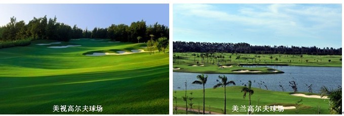 球场:海口观澜湖高尔夫球场18洞,月亮湾高尔夫球场36洞,美兰高尔夫球场18洞,美视高尔夫球场18洞