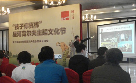 2012年3月18日下午2点,常州星河国际高尔夫主题文化节准时在星河国际售楼处开启,活动邀请了常州湖滨衡泰信高尔夫俱乐部总经理及高尔夫金牌教练到现场,为各位到场嘉宾教授高尔夫的基本知识。在学习过程中,星河国际还为业主准备了红茶、水果和一些小点心。