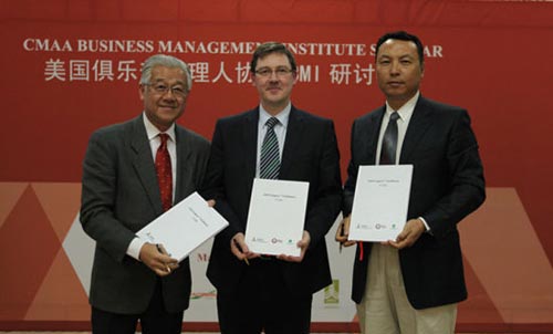 而压轴的BMI(中国)第二期课程介绍中,更是整场研讨会的亮点。戴博士带来了一个振奋的消息,CMAA中国分会得到了美国乔治亚州州立大学的支持,戴博士更被该校聘请为名誉教授,这样使得CMAA中国分会能够更好地利用这些资源,在短期内戴博士、中山大学旅游学院的陈奕滨博士以及CMAA的 Jason Koenigsfeld博士将联手在各俱樂部经理人勝任能力方面进行调研,如市场营销、运作、人力资源、财务等等,让BMI(中国)II的课程安排更加合理和适应我们本土的职业经理人。而添加课程更利于结合本土及国际兩地文化,计划中2013年的高尔夫管理将移师苏格兰圣安德鲁斯,餐饮管理课程会在香港举行。希望业内的年轻管理者踊跃参与。你会在这里开拓眼界,并学习到难得的国际先进管理经验,BMI(中国)II将开启你职业生涯的新高。