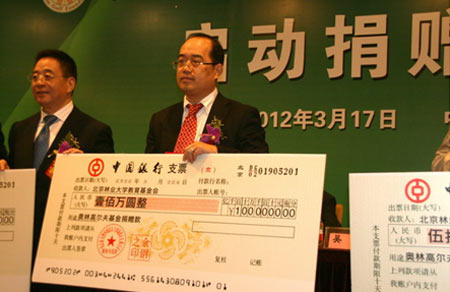 新自然董事长余钢为奥林高尔夫基金捐赠100万元