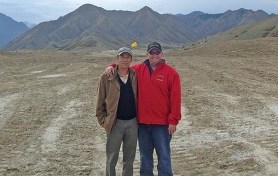 自从1992年起,Steve Alexander(SA)便称中国为家乡,其目前身份是朝向管理集团的技术总监。其工作内容之一就是在国内监控公司各个项目的进展和质量。照片为集团总经理陈朝行和他在中国西北新疆的工地上面。