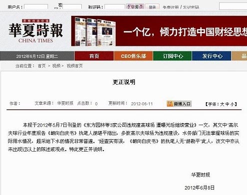 附《华夏时报更正声明》: