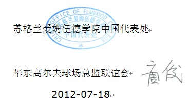 2012 年圣安德鲁斯国际高尔夫场务管理资格”认证培训(华东地区)邀请函