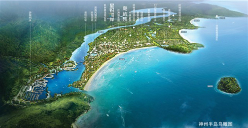 神州半岛是位于海南岛东海岸的天然半岛,隶属万宁市。半岛三面环海,坐拥四个共12公里沙滩的海湾,宜人的热带海洋性季风气候,使其年平均温度保持在20°C至25°C之间。万宁是海南名菜和乐蟹与东山羊的发源地,与文昌鸡、加积鸭并列海南四大名菜。神州半岛交通便利,距博鳌亚洲论坛永久会址仅60公里,东山岭、兴隆温泉、热带植物园、万泉河漂流等皆在半小时车程内可达。海南东线高速铁路投入运营后,万宁站至三亚仅需40分钟,至海口美兰机场也仅需50分钟,而更加便利的神州半岛站也将建成,不日也将投放使用。