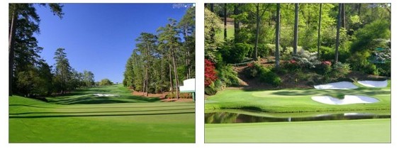 奥古斯塔国家高尔夫球俱乐部的每一个洞都是以生长在球场的树、花和灌木命名的。沿着第15洞的球道和果岭盛开的木兰花正是第 15洞的名字。球场上最为苛刻的第 12 洞,被命名为金钟花。那些美丽的开花树木和灌木丛以及细心呵护的球场边缘,与精心修剪的球道和果岭相映成趣。球道看起来非常吸引人,果岭宽阔而且生机勃勃,而沙坑只是零星可见。