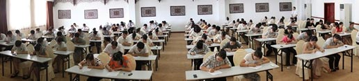 8月14日,黄山高尔夫2012服务技能大赛之“应知应会”考试在酒店青松厅与翠松厅同步举行,酒店300余名员工参加考试。