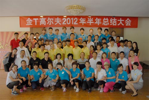 2012年7月16日上午九点在金T高尔夫温都水城练习场召开“金T高尔夫2012年半年总结大会”,出席本次大会的有:企业顾问蔡长洪先生、董事长叶伟先生、副董事长谢欣女士、执行总裁陈小军女士及金T高尔夫全体员工。