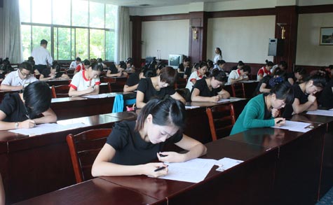 8月23日,上午8点,酒店管理公司迎宾楼2号会议室里正在进行烟台市职业鉴定资格考试,分为理论与实践两部分。本次考试由烟台市职业技能鉴定中心和龙口市职业鉴定中心统一组织,南山国际高尔夫球会与酒店管理公司联合举办,共有59人报名参加了本次考试,其中南山国际高尔夫球会下属俱乐部酒店基层管理人员报名参加的有30人。