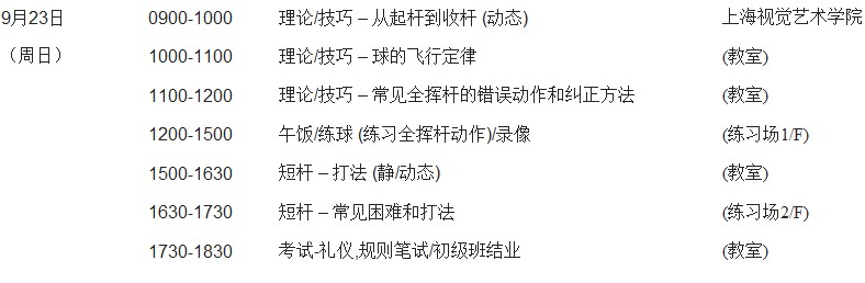 2012 USGTF-高尔夫专业教练初级班3天培训课程表