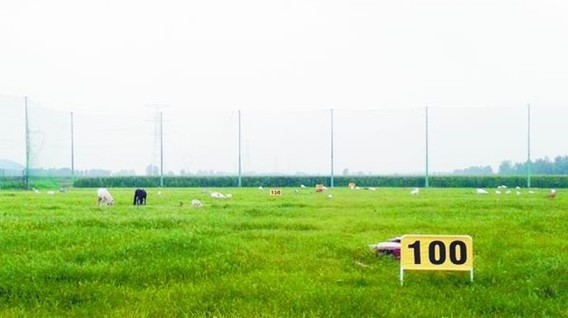 天津高尔夫练习场请羊来"剪草"