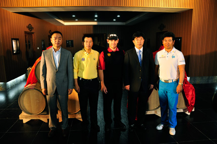 北京时间10月10日,同一亚洲“南山▪中国大师赛”进入到了职业-业余配对赛的阶段。早晨8点30分,做为配对赛前的热身活动,路易·乌修仁(Louis Oosthuizen)、梁荣银(Y.E. Yang)这两位世界顶级球星来到南山庄园VIP藏酒中心,一起体验南山庄园酒文化,步入优雅的葡萄酒世界。