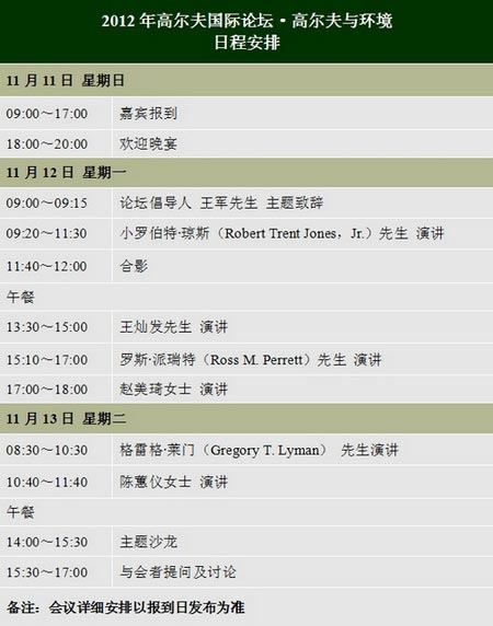 第六届朝向高尔夫国际论坛 日程安排