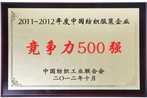此次入围全行业2011-2012年度中国纺织服装企业竞争力500强,标志着比音勒芬服饰股份有限公司进入快速发展阶段,比音勒芬品牌的知名度和忠诚度将会得到进一步提升,向“打造中国高尔夫服饰第一品牌”的企业战略目标迈出了坚实的一步。