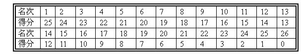 每月比赛均按净杆名次给予个人积分: