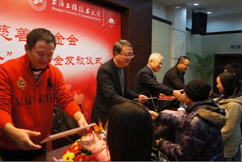 2012年12月13日日下午1点30分,在松江大学城上海工程技术大学图文中心的第三报告厅内举行了上海慈善基金会“SGCU慈善基金”助学金发放仪式。