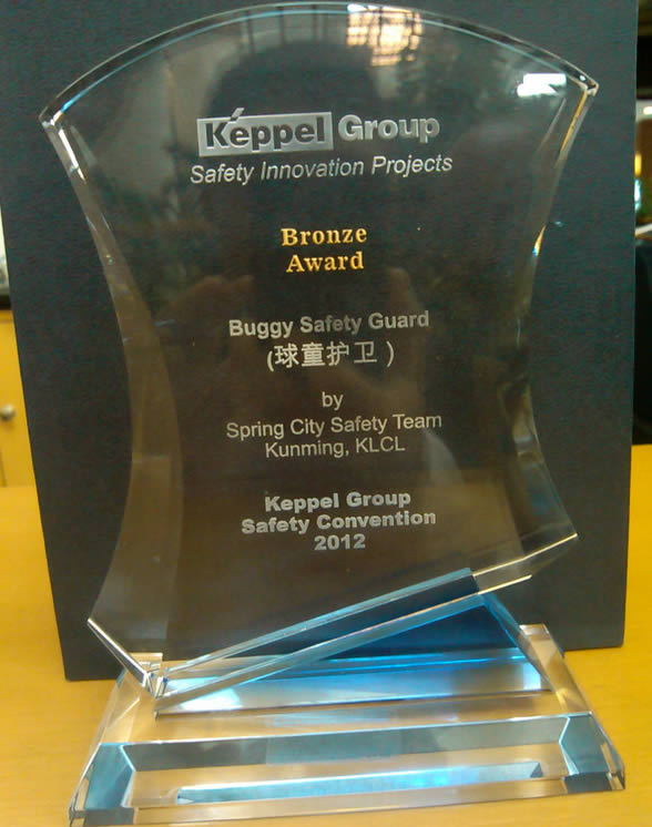 紧扣吉宝集团核心价值观:以人为本、安全第一、敏锐与创新,权责合一。昆明春城湖畔旅游置业发展有限公司积极参与了吉宝集团组织的2012年安全创新大赛,经过多个部门的共同努力,春城选送的“球童护卫”参赛项目一举夺得铜奖。借此,春城也成为本次大赛唯一的中国区获奖企业。