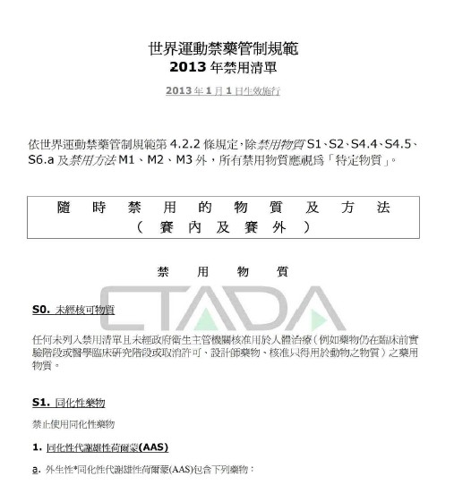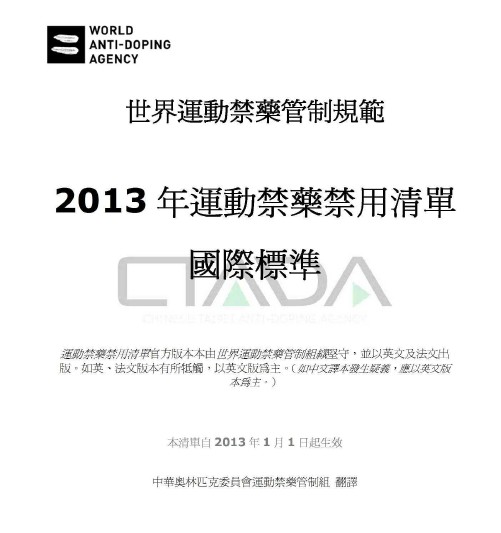 2013年运动禁药禁用清单国际标准