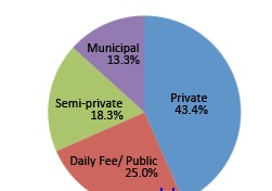 完成调查的草坪管理者受聘于不同类型的高尔夫球场:范围从每年预算只有10万美金的9洞公众球场,到年预算超过200万美元的45洞纯会员高尔夫设施,在2011年的调查中,超过72%的草坪管理者供职于18洞高尔夫球场,他们供职的球会类型分布如下: