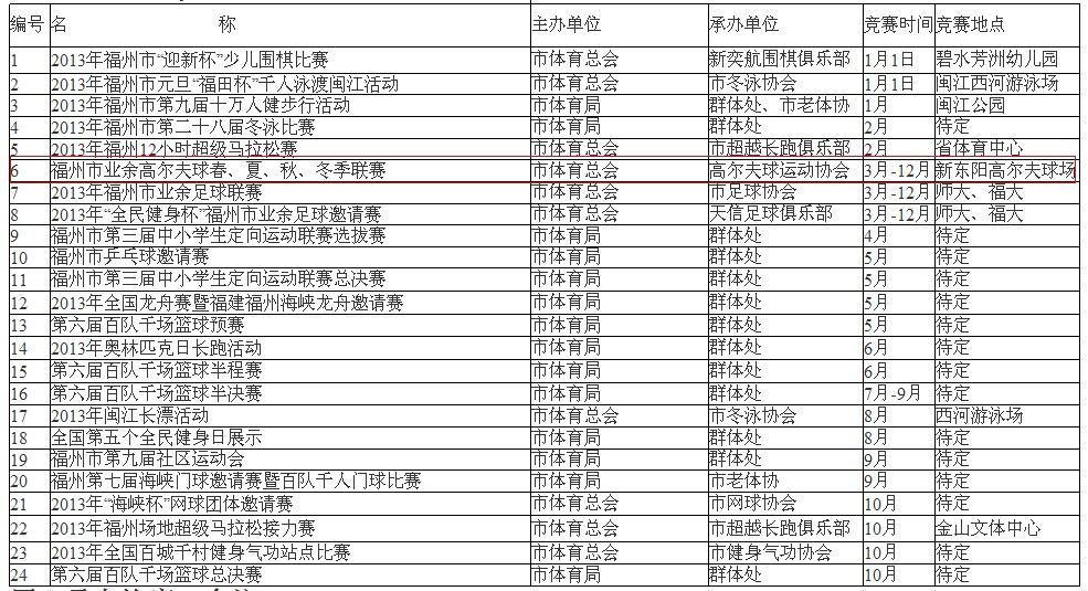附件:2013年福州市体育竞赛、培训计划
