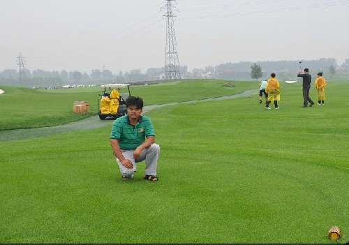 而我在2009年调入东方集团扬州球场,在那里我经历了冷季型草坪转换暖季型草坪的管理,南方球场有细腻的管理,擅长除草剂和杀虫剂的运用。而北方擅长杀菌剂和果岭的维护。而我所处的地理正是冷暖型草坪都有的,果岭是翦股颖,而球道是狗牙根。南北方的差异让我更学到了很多。