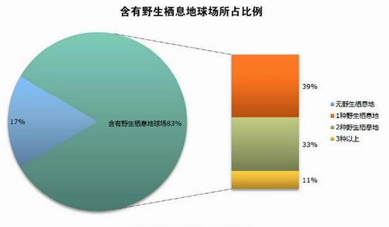 高尔夫进入中国已经有29年的历史,高尔夫球场的环境保护意识也随着时间的累积逐渐提高。根据2012年度《朝向白皮书》数据显示,在调查中有90%的球场表示有制定节水、节约人力、节约用肥用药或环境保护计划等环保相关措施,其中43.2%的球场有明确的环保节能目标并能够按计划实施,46.8%的球场有节能环保目标,但实施情况一般。