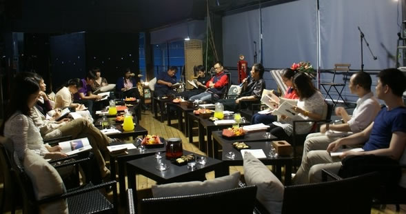 2013年4月27日下午,“我和朝向内刊”交流会在皇冠体育中心三楼来吧空间举行,陈朝行总经理、黄晓奇总监等约15位同事及资深摄影师王凌、内刊设计单位的合作伙伴均出席了交流会。